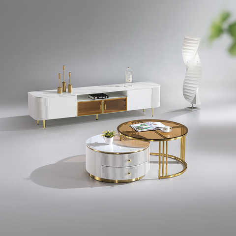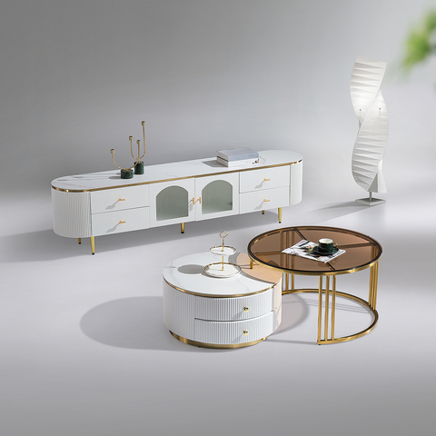Nordic Style Round Nesting Couch tisch Metall Glas Marmor MDF TV-Ständer und Couch tisch Set
