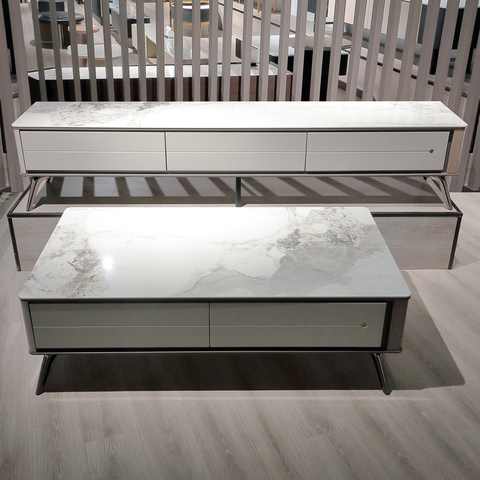 Großhandel moderne Wohnzimmer möbel Stahl bein TV-Schrank und gesinterte Steinplatte Couch tisch Set